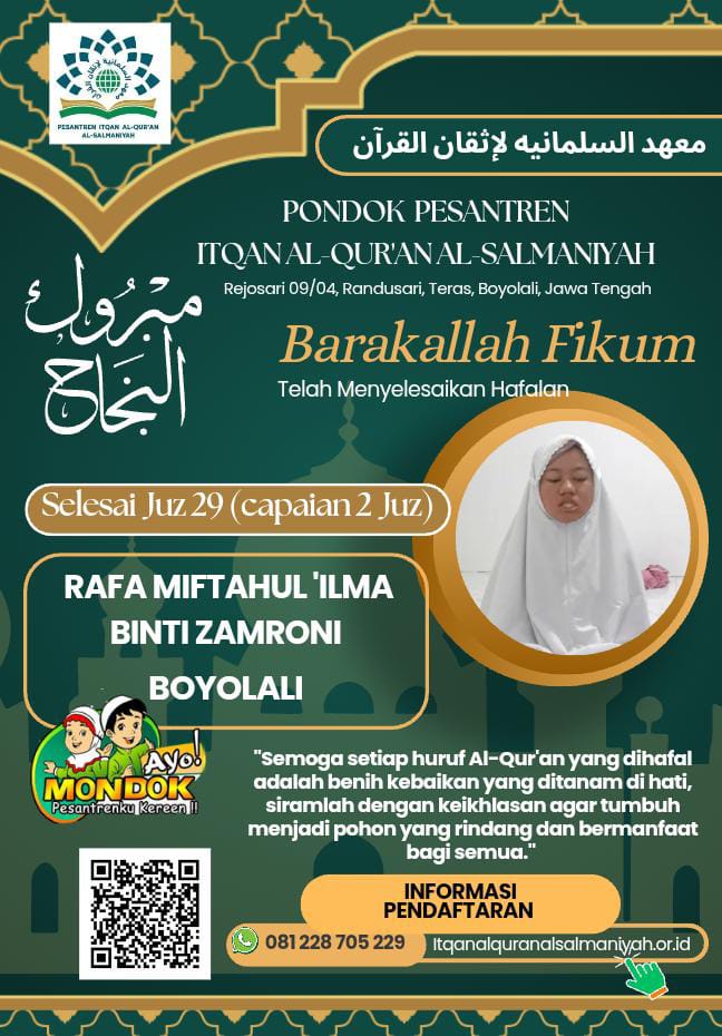 Dalam kehangatan malam Nishfu Sya’ban, Senin, 2 Februari 2025, Pondok Pesantren Itqan Alquran Alsalmaniyah Boyolali […]