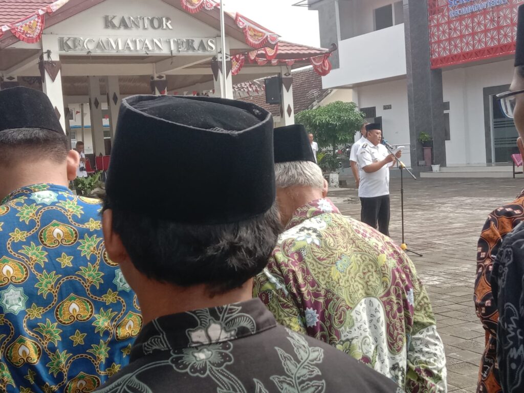 Kegiatan apel berlangsung khidmat dan penuh semangat kebangsaan. Acara ini diikuti oleh berbagai unsur masyarakat dan tokoh agama, di antaranya para kepala desa se-Kecamatan Teras, pimpinan ormas Islam, MWC NU Kecamatan Teras, GP Ansor dan Banser, pimpinan Muhammadiyah, MTA, LDII, serta delapan pondok pesantren yang ada di wilayah Kecamatan Teras.